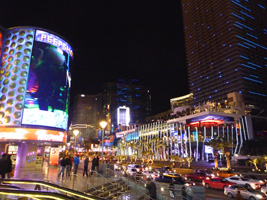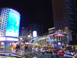 | 取り敢えず夜の街並みを見つつ、部屋用のビールを買いに行こう。人が多いな、しかも既に酔っ払いが多いな。シティセンター隣のコスモポリタンは出来上がってますな。これで全て完成かな? |