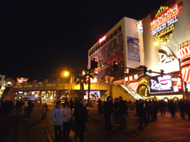 | 夜がやってきました。22時頃にストリップに出てみたが、歩行者天国になってますな。人出は意外と多くない。あちこちでカウントダウングッズが売られていて意外なほど売れている。普段こんなものを買わない大熊猫も買ってしまう....。たまにはいいだろう....。 |