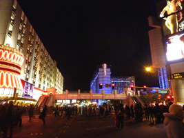 | こんな時じゃないとストリップの真中は歩けないからね。しかし、ほぼ下着同然の白人は寒くないのか? |