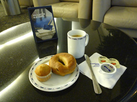 | 1/1だからな。流石に空港も空いている。 分りにくい場所にあるCOのラウンジにお邪魔してちょっとファンなミニマフィンを頂きましょう。って搭乗始まってるぞ。 |