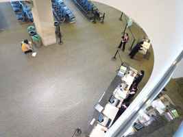 | 今日明日が年末出国のピークらしいので早めに空港へ向かうとしよう。なにか珍しい物が見ることが出来るかもしれない。と、空港に着くと直前に予約しようとして予約出来なかったP5は意外と混んでいない。すんなりといつもの1Fにとめることが出来た。P5からターミナルまでの長い道のりで大量の中国からの団体と韓国からの団体に遭遇した程度である。 いつもより南ウィングの出発階は人がいないじゃん。チェックインも混んでいないぞ。チェックインで聞いてみるといつもより空いているようだ。セキュリティもガラガラ、出発ロビーもガラガラである。セキュリティでゲート自動化を通らなくても全く問題ない。 |