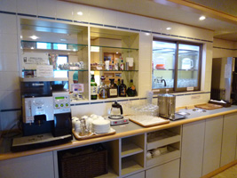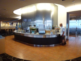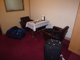 一応ラウンジがあることはあるが、狭いな20席ちょっとか。でも酒もあるな。先輩も大熊猫も後が決っているので酒は飲めず。 |