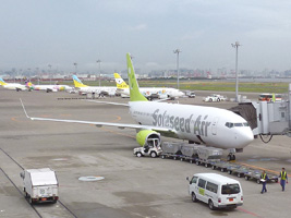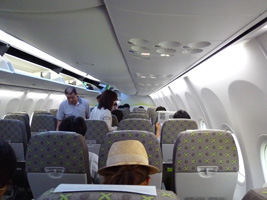 さて、LQ便に乗込みましょう。機材は737-800だから新造機ですな。737-400よりはましだな。エコノミーとしては広い方じゃないか?アッパークラスはないが、エコノミーを決め込むなら十分である。 |