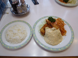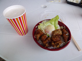 レンタカーをピックアップして、先輩の知り合いのサーフショップ詣でし、ちょっとポイントを案内して貰って飯を食おう。宮崎と言ったら鶏南蛮か。おぐらチェーンの店で鶏南蛮。 |