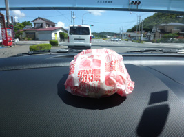 ゆっくり寝て翌日はまたお倉ヶ浜海岸へ。あまりにも波がでかいので、一部会場を移動します。延岡新港方面へ。途中でマクドナルドのダブルチーズバーガーをかっこんだが、蕎麦屋のドライブスルーもあったぞ。どうやって食うんだ? |