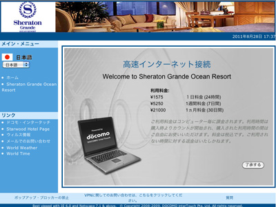 宿はシーガイヤにあるシェラトン・グランデ・オーシャンリゾートである。 |