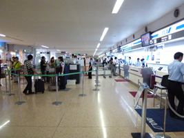 レンタカーをリターンして空港まで送って貰って、まずはカウンターで「こちらへ」って言うんで預け荷物のセキュリティーでの会話。 |