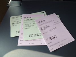 慣れない日本国内線のチェックインで「搭乗案内書」を頂く。セキュリティで「搭乗口案内」を頂く。そしてゲートで「搭乗券」を頂く。これって何の意味があるのだろうか?いい加減に国際標準にして頂きたい物である。 |