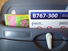 機材は767-300の旧タイプ。シートは新しいが流石に機体は疲れている。空いてますな。NHのエコノミーは10年ぶりですな。シートピッチは狭いですな。シートの座面の面積も狭い。 |