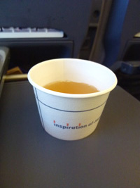 まずはラウンジで飲むぞ〜〜。青汁がありますぜ。軽く飲み物がある。ビールもある。つまみは袋煎餅しかない。フルーツもない。昔のUAのようだぞ。(最近のUAはそれだけ良くなったと言うことか) |