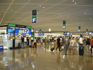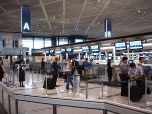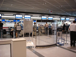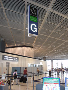 出発ロビーへ到着。Fカウンターの前ですな。