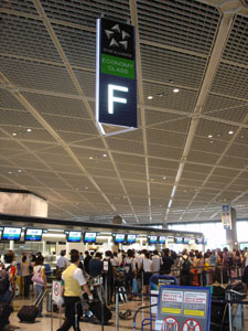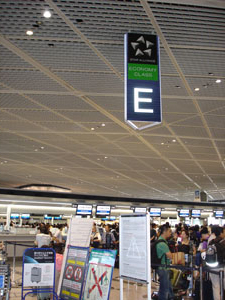 Eカウンターもエコノミークラス。すげ〜混んでる2。どっちに並べばいいのか悩むな。